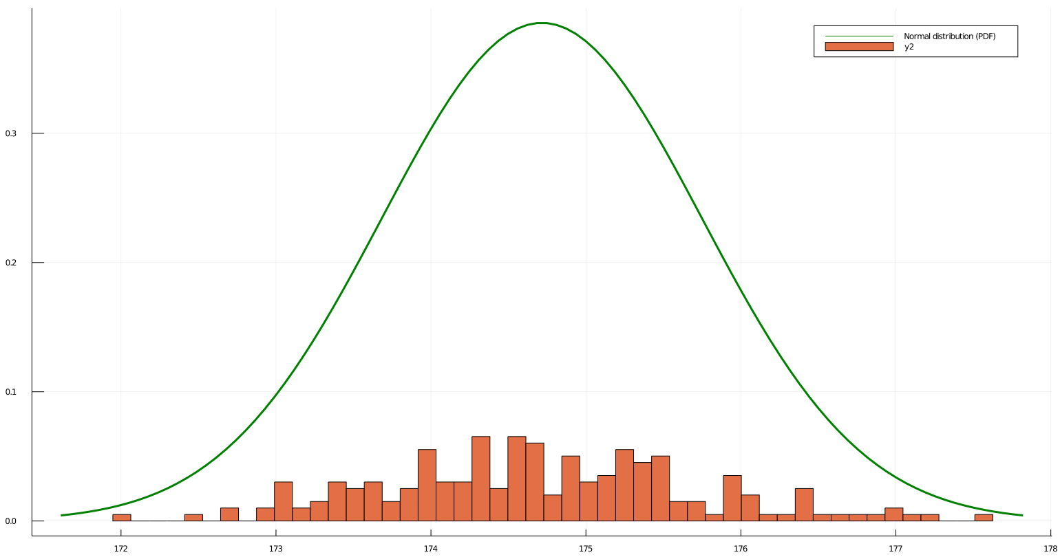 Plots.histogram!(sample_means, bins=bins, weights=(1/sum(counts)).*ones(length(sample_means)))